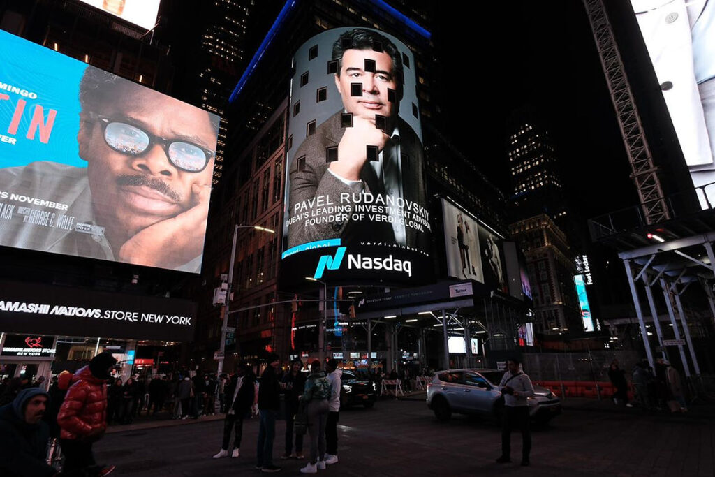 In a momentous move, NASDAQ has selected Pavel Rudanovskiy, the visionary Founder of Verdi Global Consulting Group, for the prime spot on its iconic Times Square billboard. This recognition comes as a testament to Rudanovskiy’s profound impact on the world of international investments, particularly in the dynamic market of Dubai.